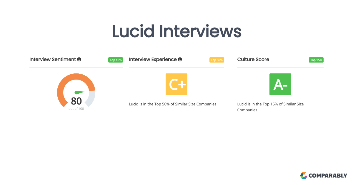 Lucid Software Interview Questions and Interview Process Lucid Employee Reviews 71% of lucid employees would recommend working there to a friend based on. 48% of lucid motors employees would recommend working there to a friend based on glassdoor reviews. Lucid motors has an overall rating of 3.0 out of 5, based on over 960 reviews left anonymously by employees. A free inside look at company reviews and salaries posted anonymously. Lucid Employee Reviews.