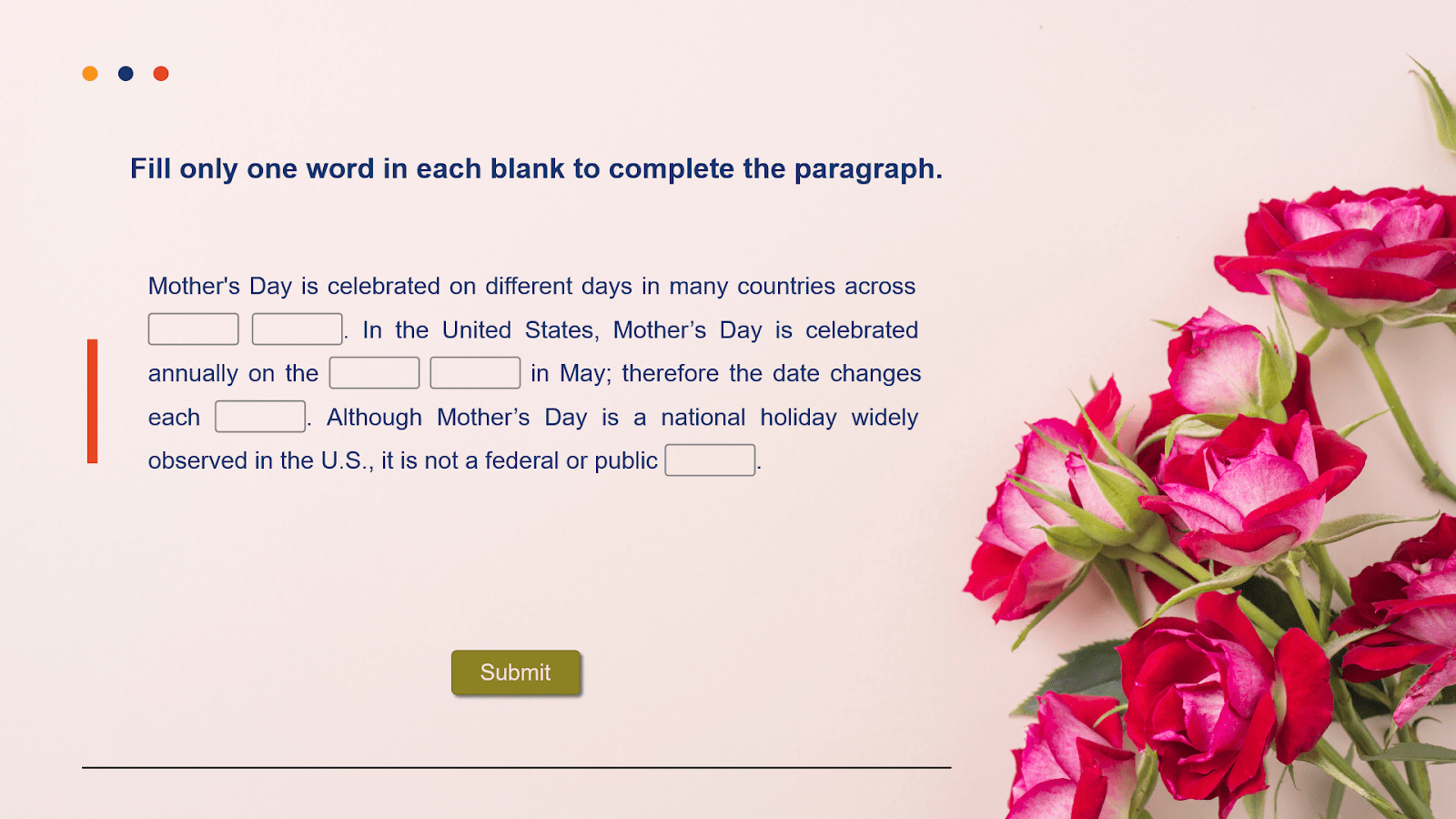 Fill in the Blanks Quiz — Captivate Template eLearningchips Online Fill In The Blank Quiz Maker (subscribe to increase your word limit.) 1. No credit card details required to create an account. Create immersive quizzes complete with images, gifs, audio clips, videos, graphs, illustrations, and so much more! Tap into 12+ question types including. Add questions once and reuse them on any quizzes. Either share it with your friends or studen. Create fill in the blank. Online Fill In The Blank Quiz Maker.