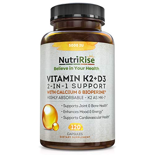 Vitamin K2 + D3 5000 IU Supplement with Calcium & BioPerine. Maximum