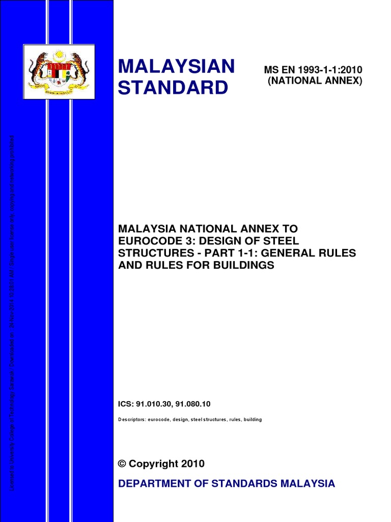 Ms en 1993 1 1 2010 Malaysia National Annex To Eurocode 3 Design of