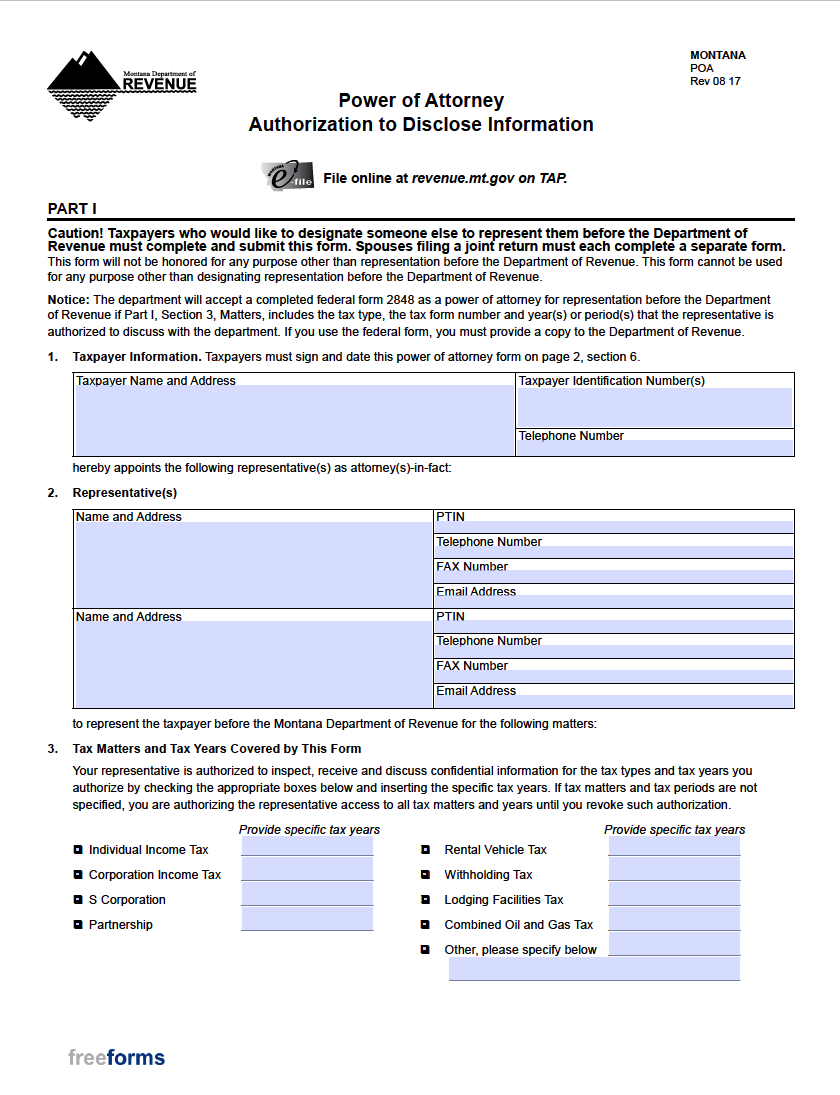Free Montana Tax Power of Attorney Form PDF