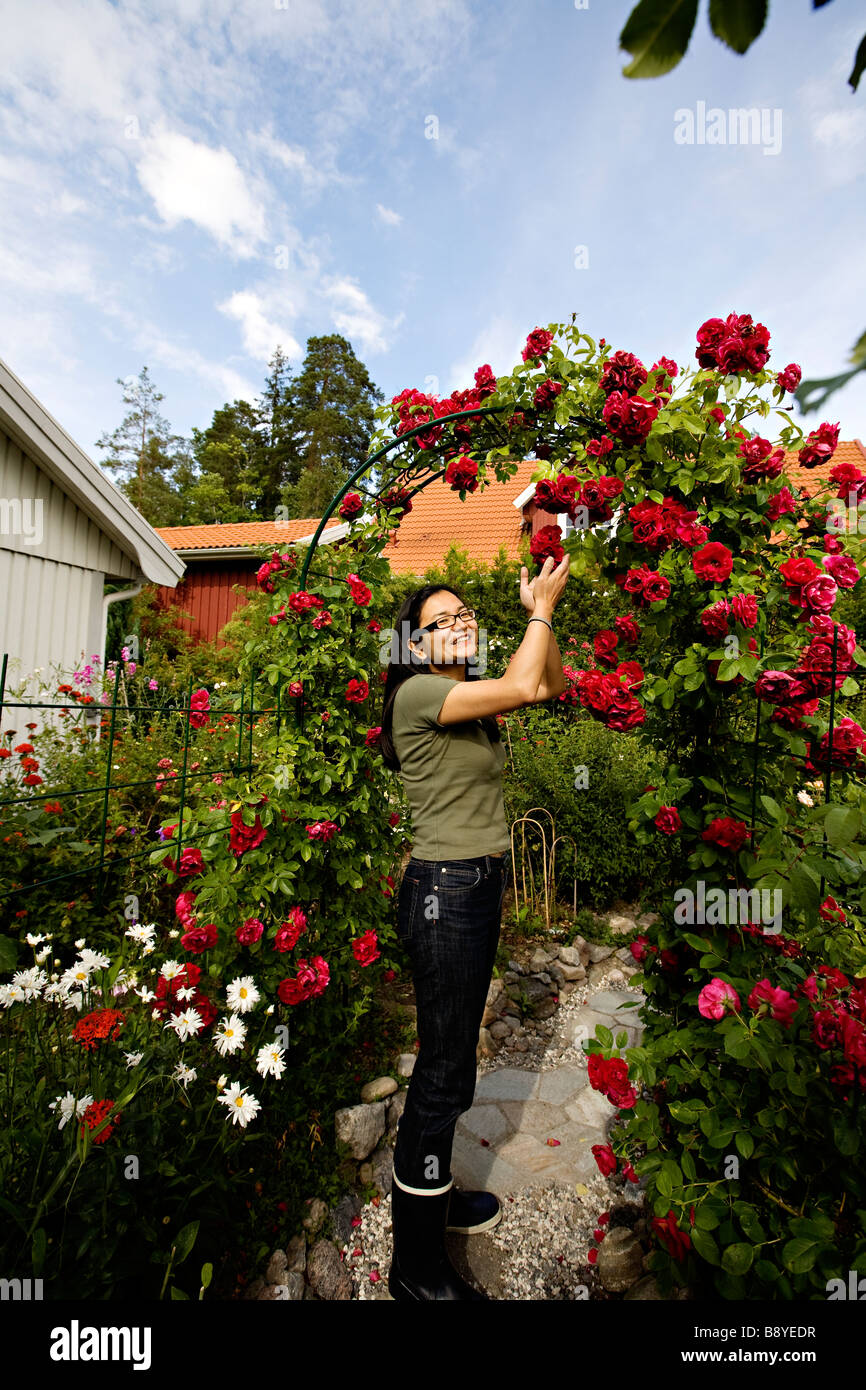 A Japanese woman in her Swedish garden Sweden Stock Photo Alamy