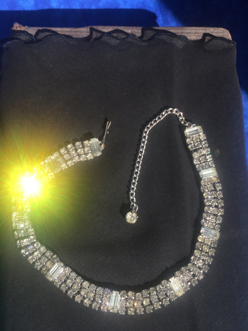 Vintage Rhinestone and Baguette Choker Necklace Etsy