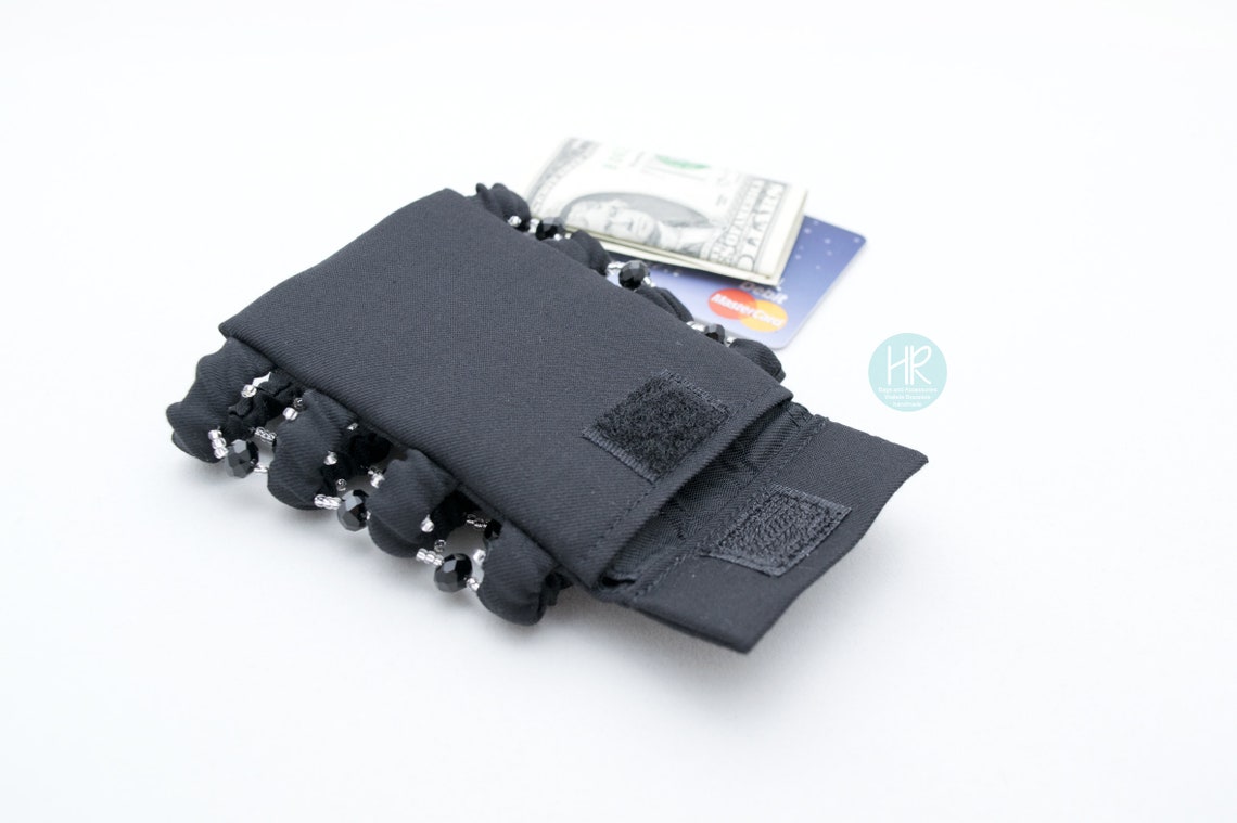 Travel Wrist Wallet Black . Wide Female Bracelet Purse With a Etsy UK