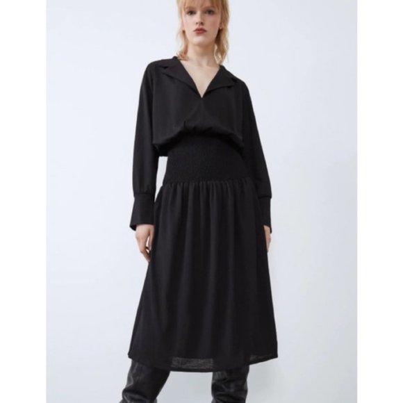Zara Dresses Nwt Zara Black Smocked Dress Poshmark
