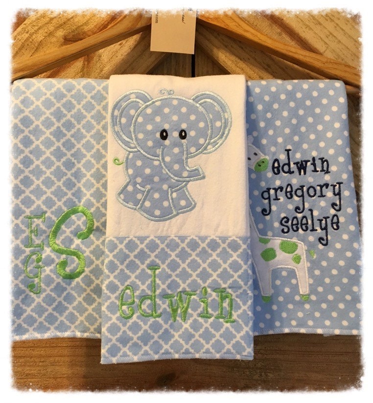 Personalized Baby Burp Cloths Blue by DoughertyLakeThreads on Etsy