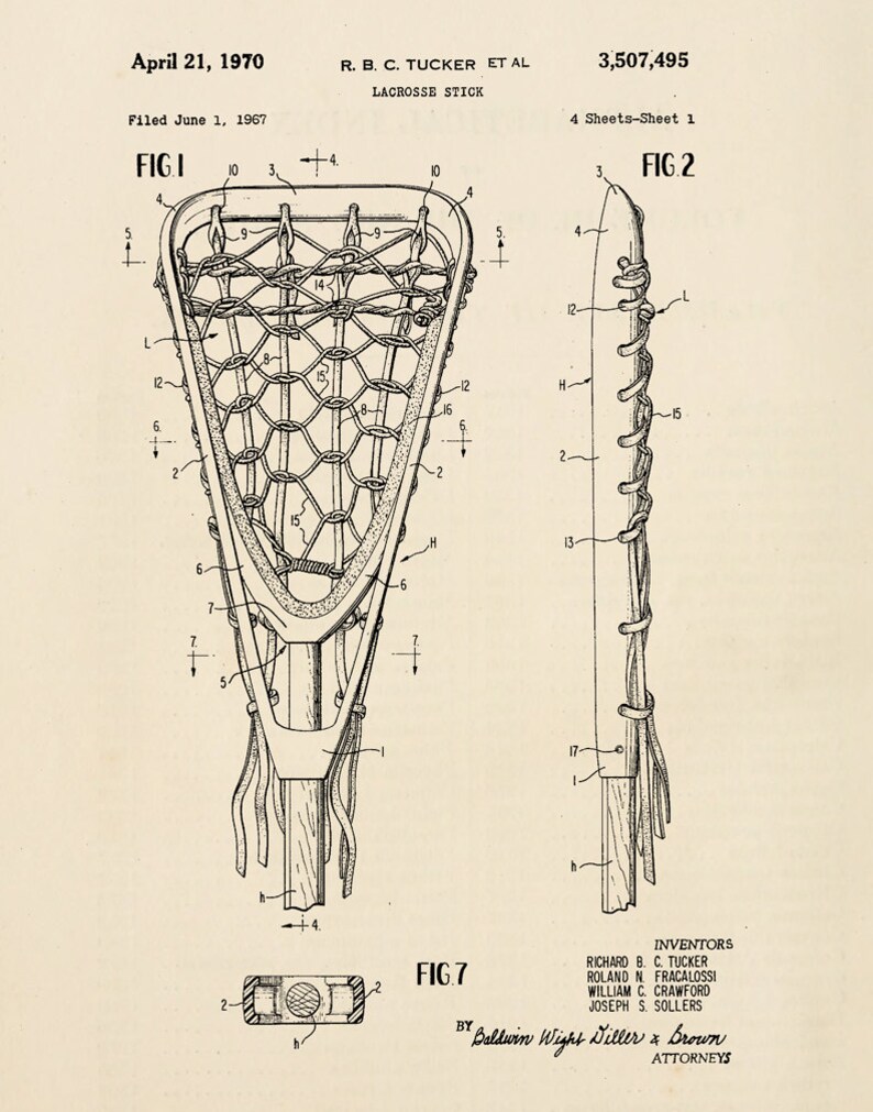 Lacrosse Stick Patent Print Old Look (8.5" x 11") M11193 Lacrosse Stick Patent in 1970, the first patent (us patent #3,507,495) for a synthetic lacrosse stick was issued to stx. lacrosse sticks generally include an elongated shaft and a head frame. lacrosse sticks in the game of lacrosse, players use sticks to receive and shoot a ball. Lacrosse sticks generally include an. the lacrosse stick according to claim 19. Lacrosse Stick Patent.