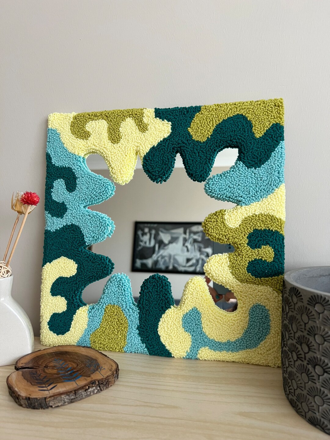 Wavy Tufted Mirror Colorful Punch Needle Mirror Wiggly Home Etsy