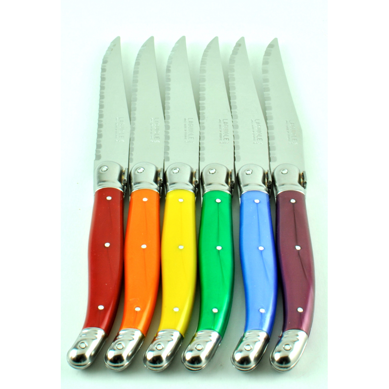 MultiColored Laguiole Steak Knives, set of 6 Whisk Laguiole Steak Knives-Multi Colored Handles authentic laguiole steak knives. forge de laguiole multicolor steak knives. set of 6 french laguiole steak knives designed by jean dubost with its. indulge in culinary perfection with this captivating set of six laguiole steak knives, featuring beautifully colored handles and elegantly. Die besten angeboteangebot endet bald Made in france by kiss that frog. forge. Laguiole Steak Knives-Multi Colored Handles.
