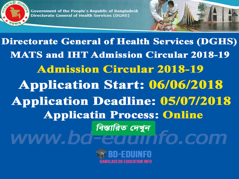 MATS & IHT Admission Circular 202021 www.dghs.gov.bd Mats Iht Admission 2020-21 10962 11534 12836 13491 14023 14180 14193 14620 15082 15511 16078 17950. Admission for iht & mats. ইনস্টিটিউট অব হেলথ টেকনোলজী (iht), ও মেডিকেল এ্যাসিসটেন্ট ট্রেনিং স্কুল (ম্যাটস) সকল সরকারী ও বেসরকারী প্রতিষ্ঠান এর জন্যে। Mats admission test date has not fixed yet. Home (current) download applicant's copy; Government of the people's republic of bangladesh. Admission test for iht &. Mats Iht Admission 2020-21.
