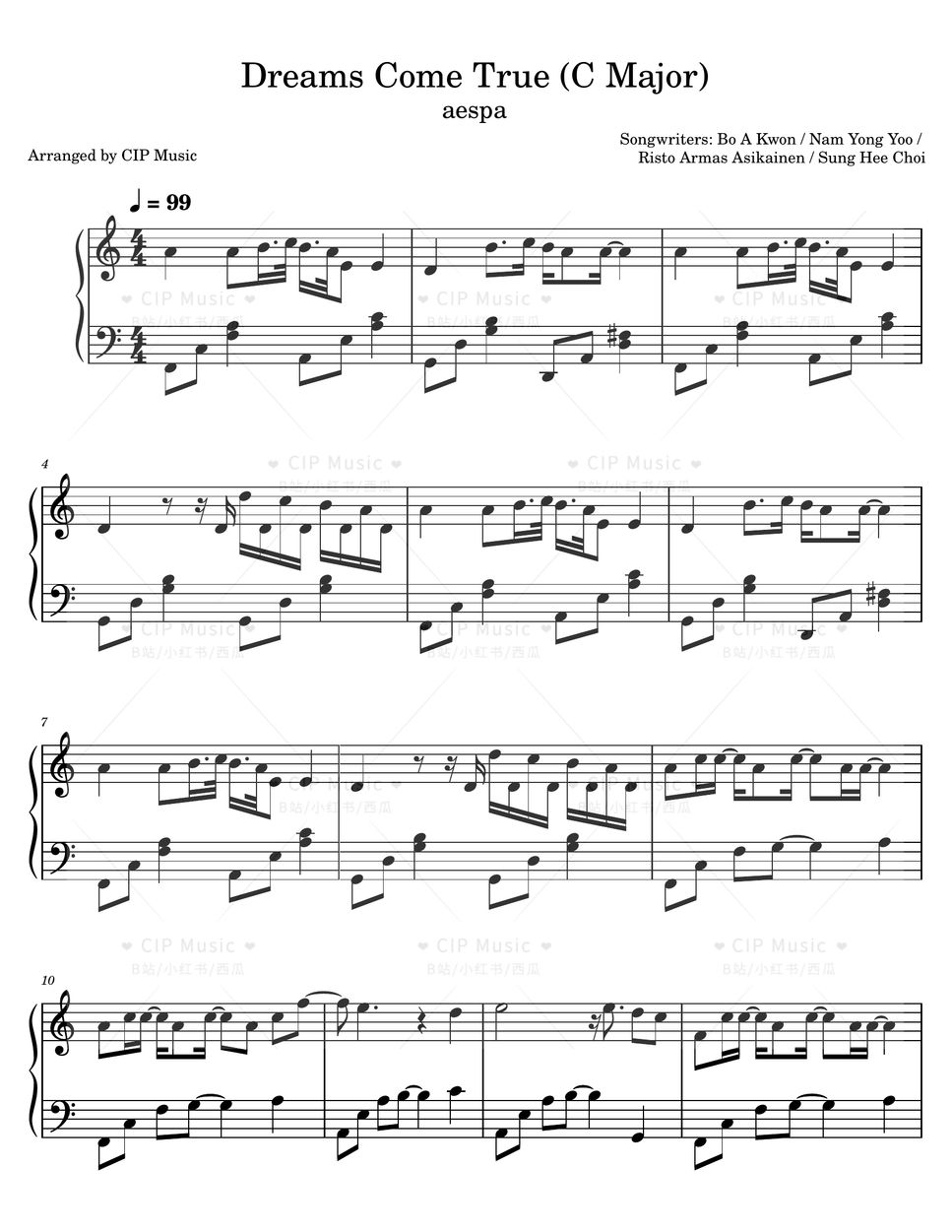 aespa Dreams Come True (C Major Ver) Sheet by CIP Music
