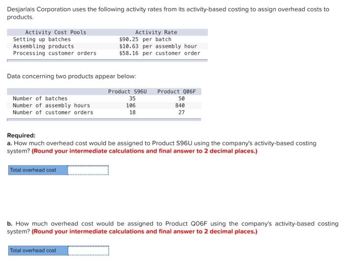 Solved Desjarlais Corporation uses the following activity