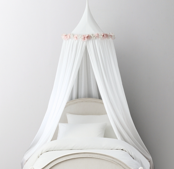 Flower Appliqué Voile Bed Canopy