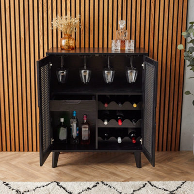 Buy Spinningfield Rattan Drinks Black Wine Bar w/ 4x Wine Glass Rails Black Wine Cabinet Coco design small bar cabinet, black modern liquor wine cabinet with storage with led light for home, farmhouse buffet coffee sideboard with glass door & wavy wine rack for kitchen. Store and display your collection with sophistication and ease. Browse a large selection of wine and bar cabinets in a wide range of sizes, finishes and styles. Sleek black bar. Black Wine Cabinet.