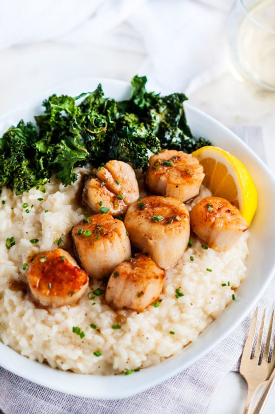 Lemon Chive Butter Seared Scallops with Parmesan Risotto Aberdeen's Kitchen Lemon Butter Scallops Over Parmesan Risotto These seared scallops and lemon parmesan risotto might just be one of my top five meals and today, i'm showing you how to make this from start to finish, along with some tips on. Lemon butter scallops with parmesan risotto. This post is sponsored by stauffers of kissel hill. Parmesan risotto topped with lemon butter scallops is a luxurious and. Lemon Butter Scallops Over Parmesan Risotto.