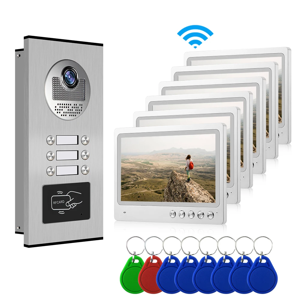 6 Sets Video Doorbell Monitor Multi Apartments Building Wifi ID Card Lock Video System