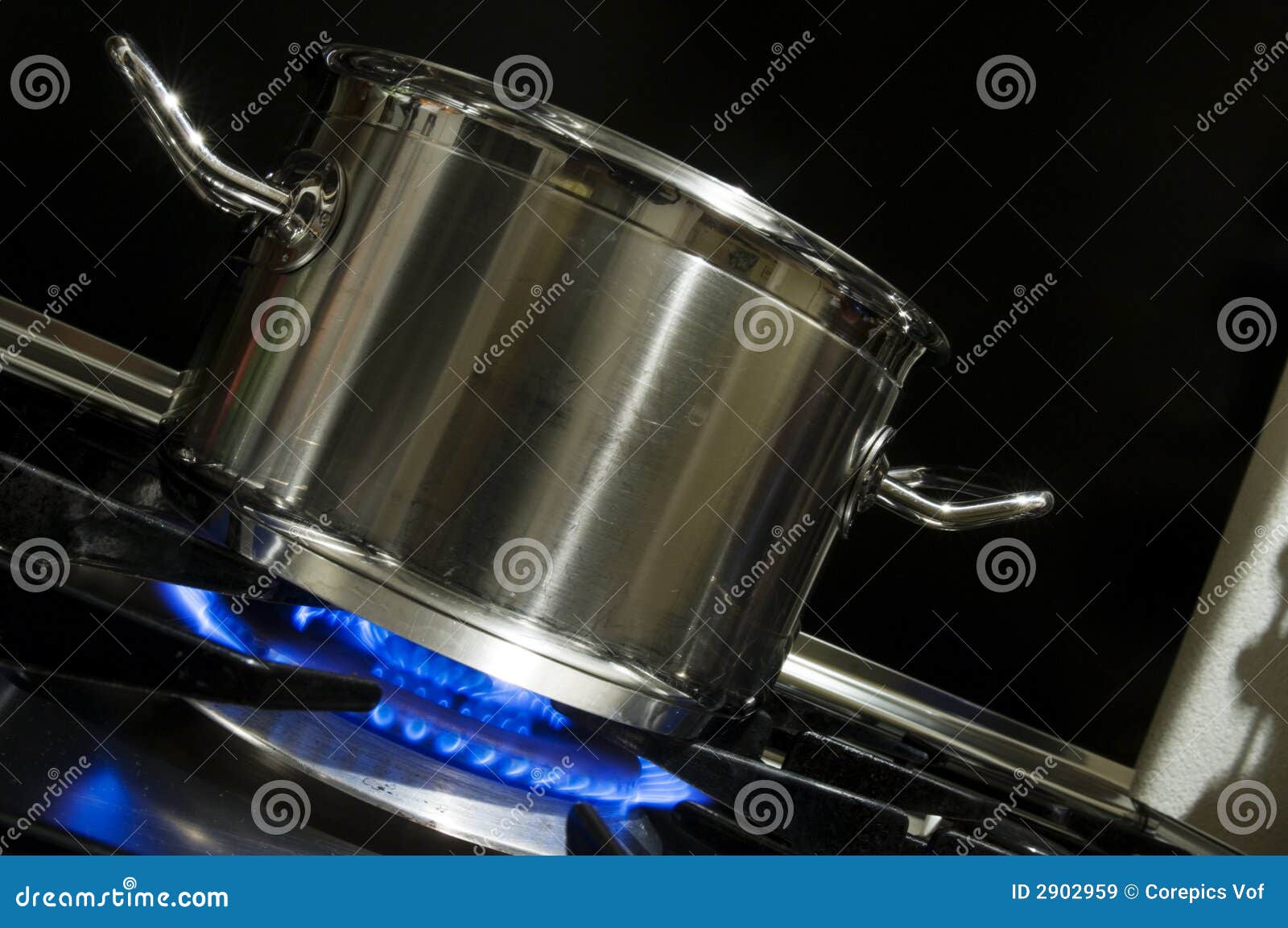 Pan and burner stock image. Image of food, flames, aluminum 2902959
