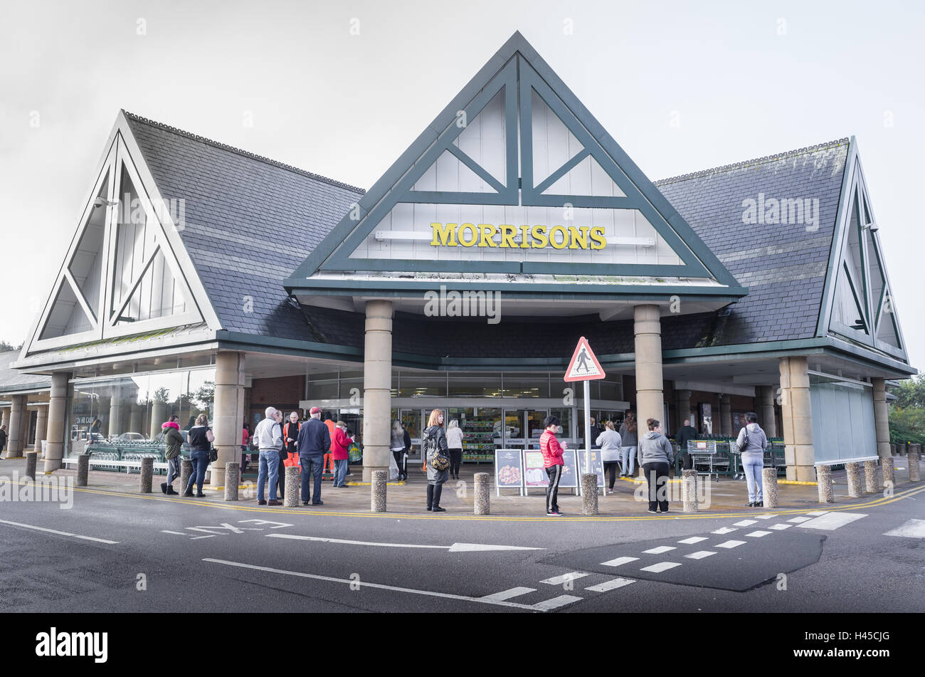 Customers wait outside Morrisons, Corby, during a fire drill practice