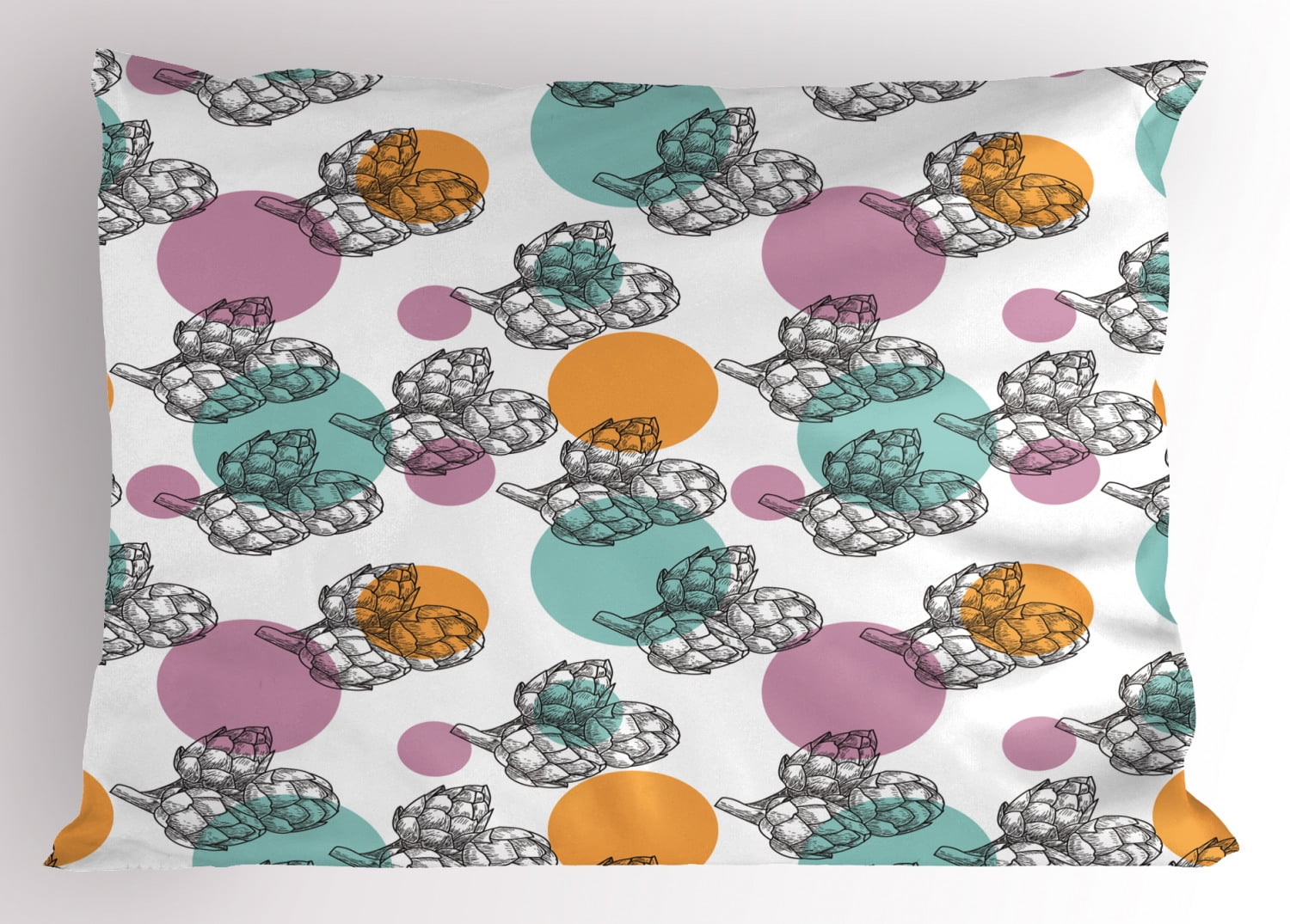 Artichoke Pillow Sham Vintage Inspired Dotted Backdrop with Black and