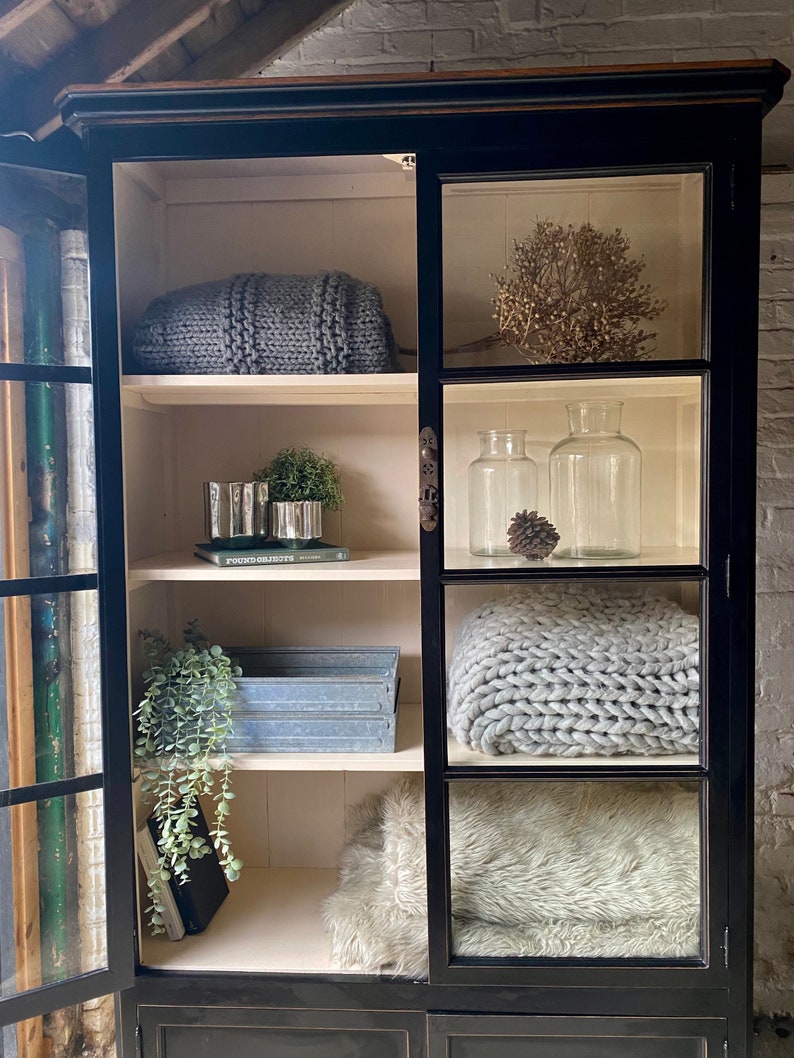 Large Black & Glass Display Black Vitrine Etsy Glass Display Cabinet Black Tempered glass doors and windows create a sophisticated display for collectibles or mementos, while the tall corner design fits neatly into small spaces. 50+ bought in past month. Glass Display Cabinet Black.