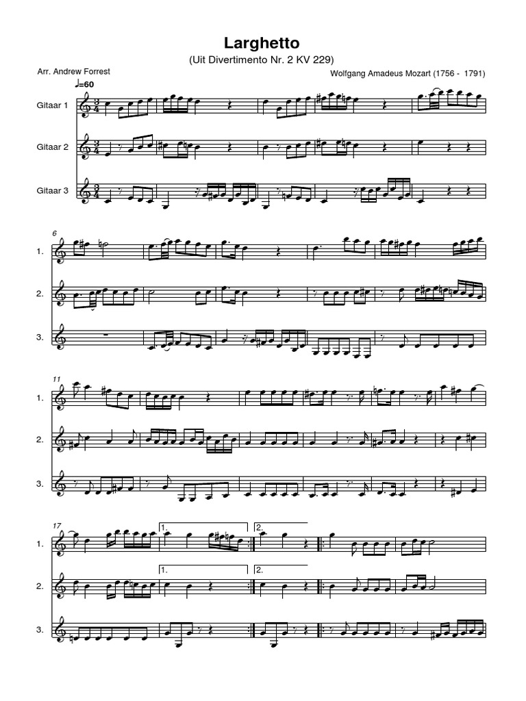Larghetto Mozart Trio Guitars PDF Mozart Family Wolfgang Amadeus