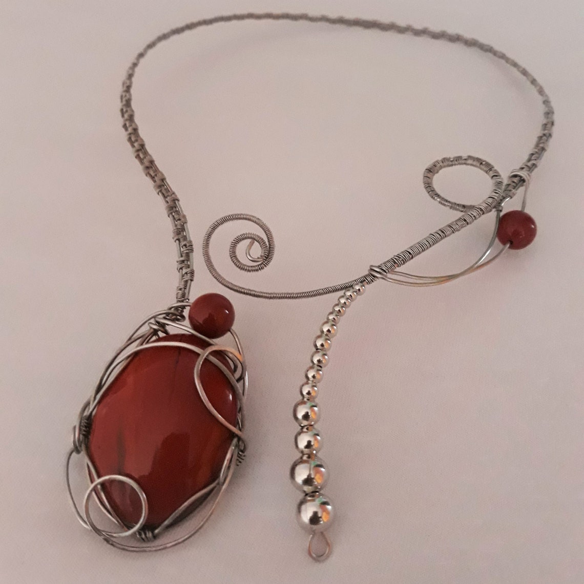 Stainless Steel Wire Necklace, Red Jasper Necklace, Unuusal Statement Necklace Etsy