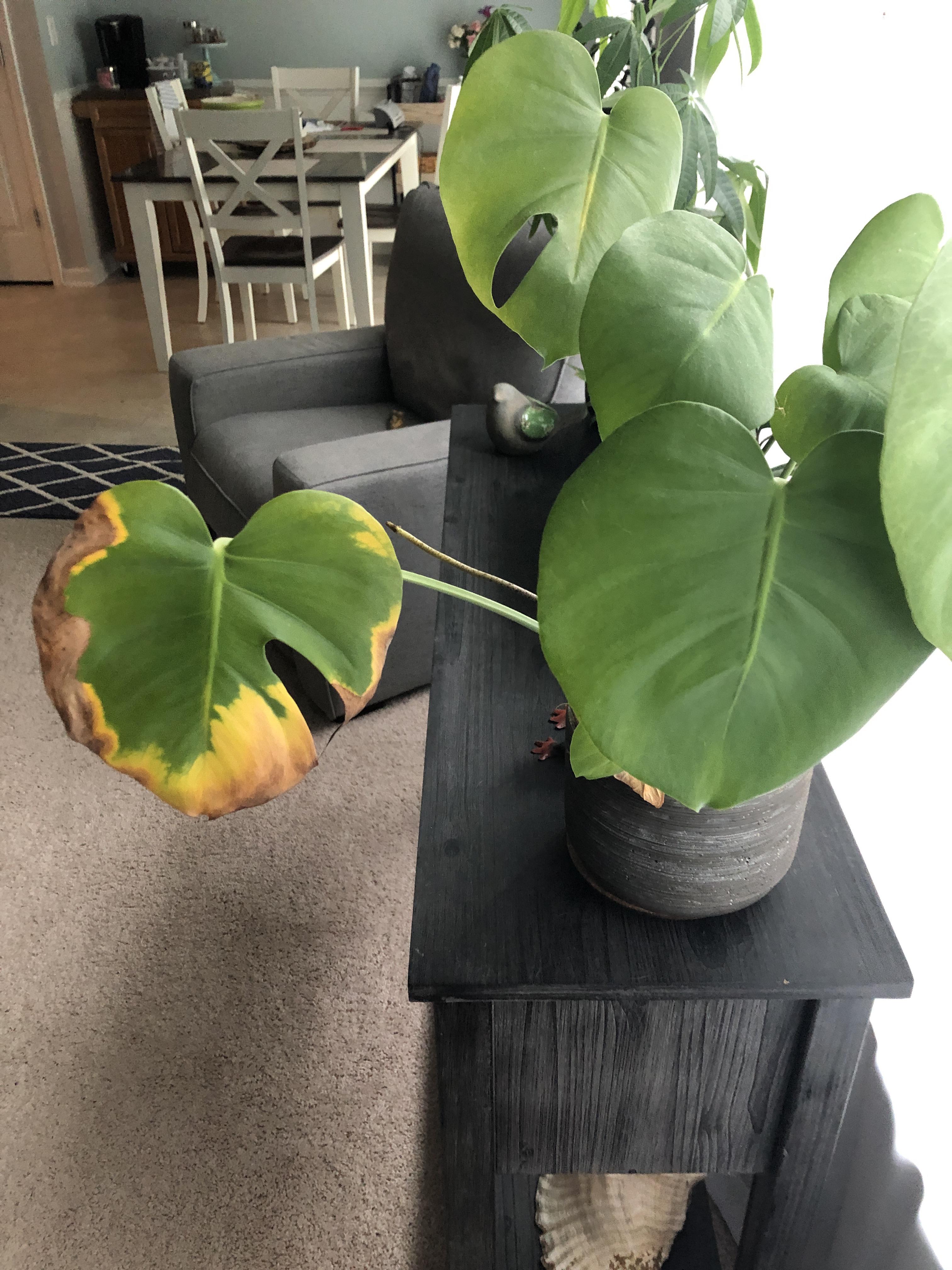 Help my Swiss cheese plant! Only this one leaf is turning brown. Is