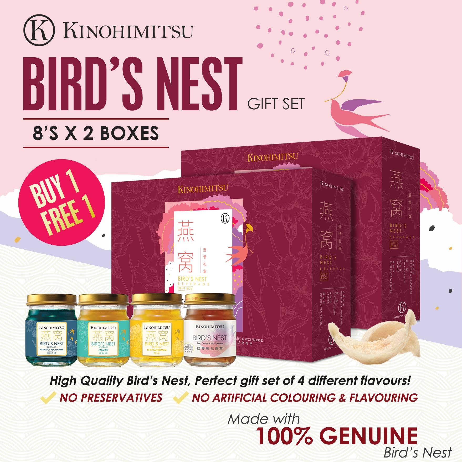 Buy [Buy 1 Free 1] Kinohimitsu Bird's Nest Gift Set 8's x 2 on ezbuy SG