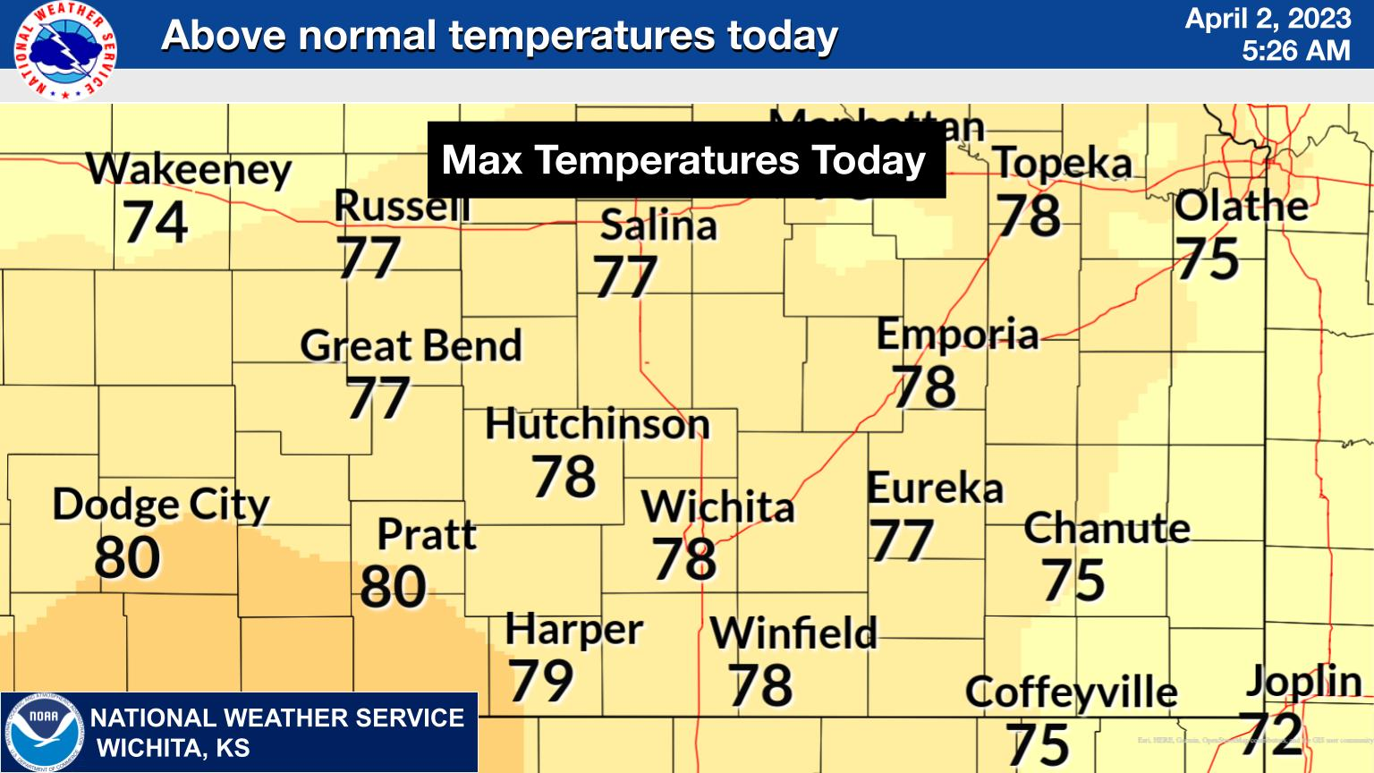 Above Normal Temperatures Today