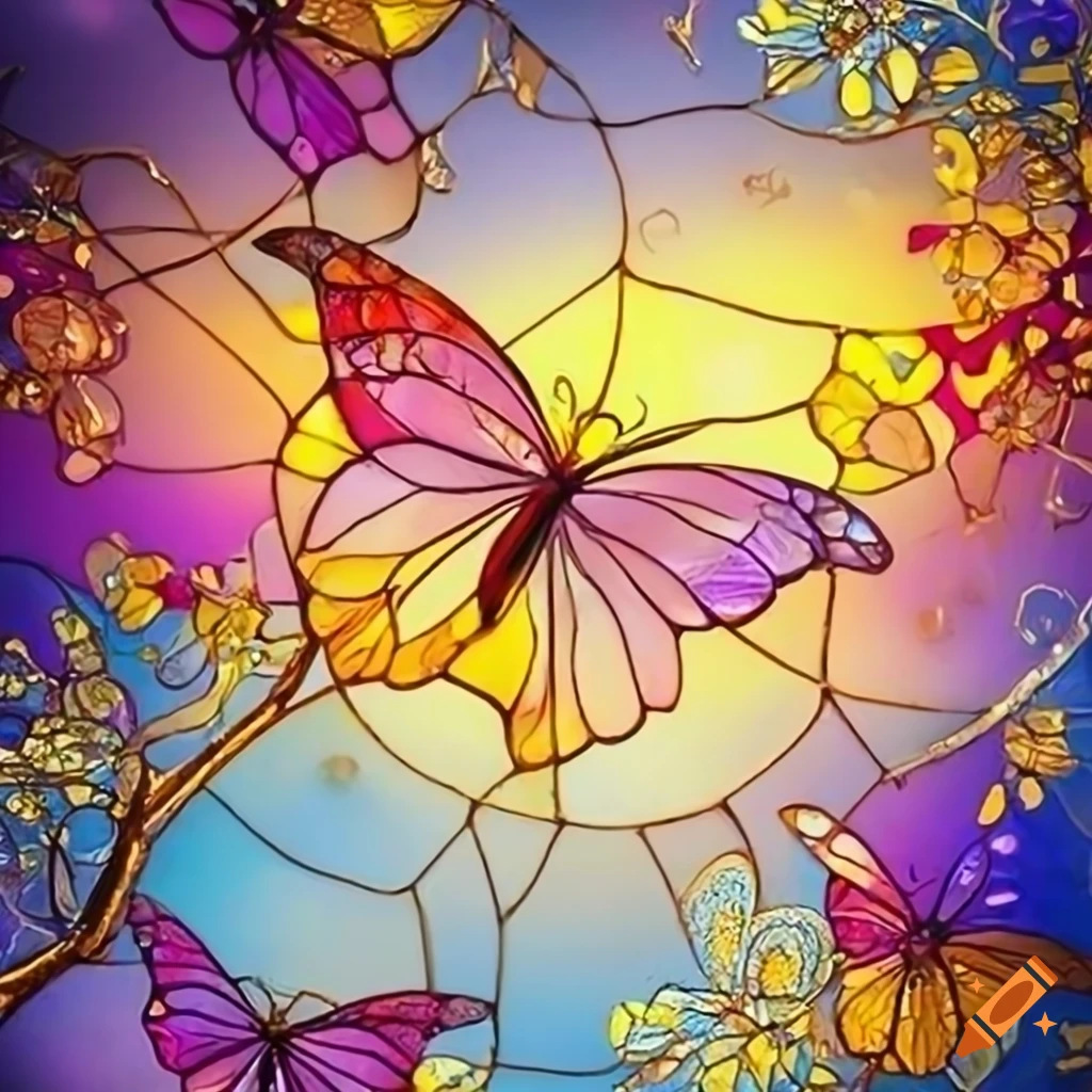 Stained glass butterflies and flowers with gold accents on Craiyon Stained Glass Butterflies And Flowers 65 stained glass butterflies and flowers clipart collection • butterflies illustrations with transparent background for creative delights. Some of the popular stained glass butterfly available on etsy include: Find stained glass butterfly stock images in hd and millions of. Illustration in stained glass style with a bouquet of pink irises and butterflies on a yellow background in a bright frame.. Stained Glass Butterflies And Flowers.