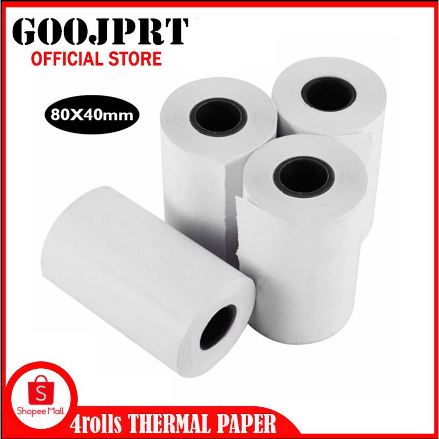 GOOJPRT 4 Rolls 80mm*40mm Thermal Paper for Thermal Printer (White) Shopee Philippines