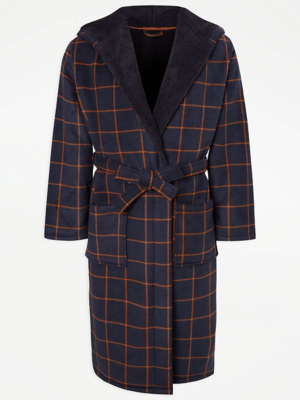 Navy Checked Dressing Gown Men at ASDA