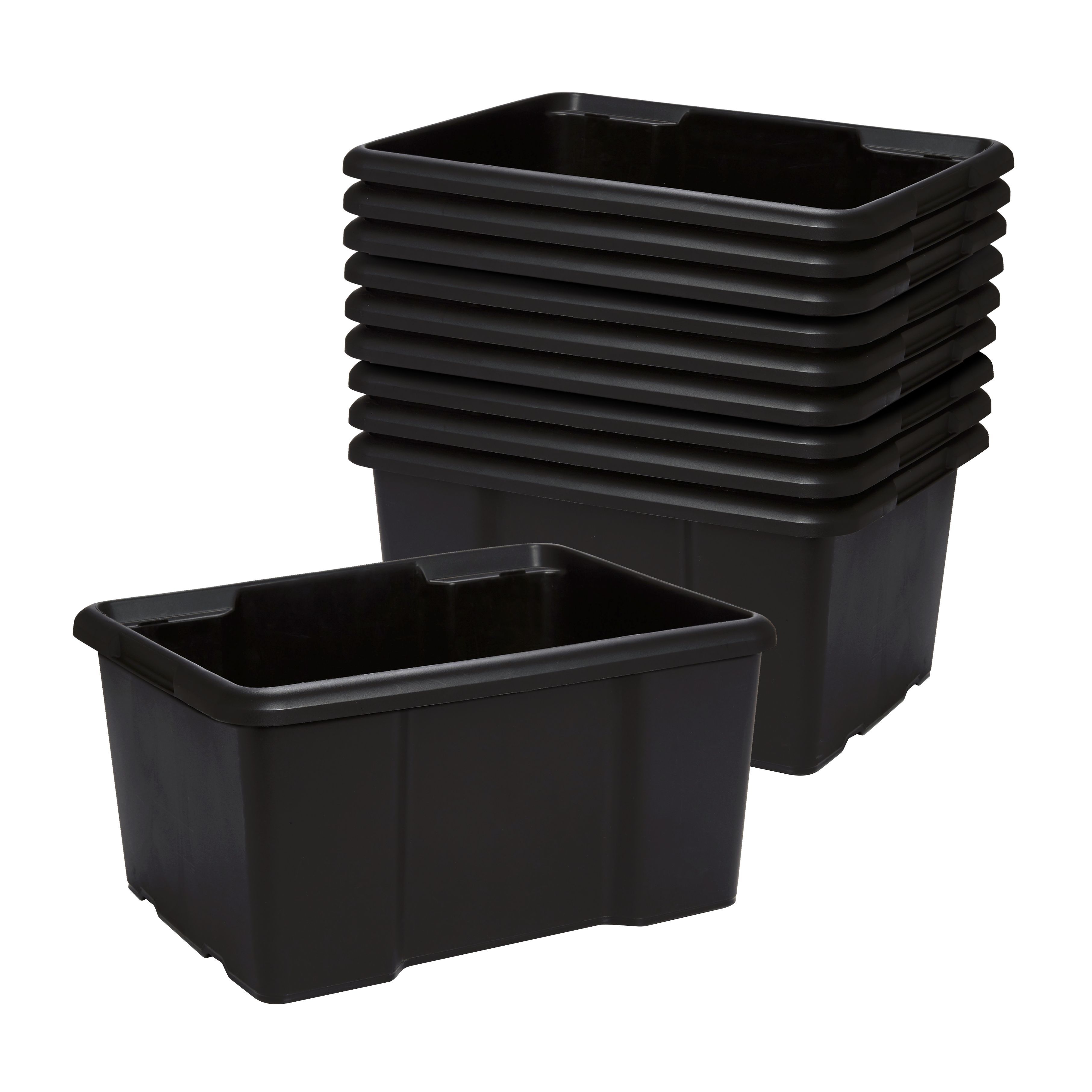 Fitty Black 26L Plastic Stackable Storage Boxes, Pack of 10