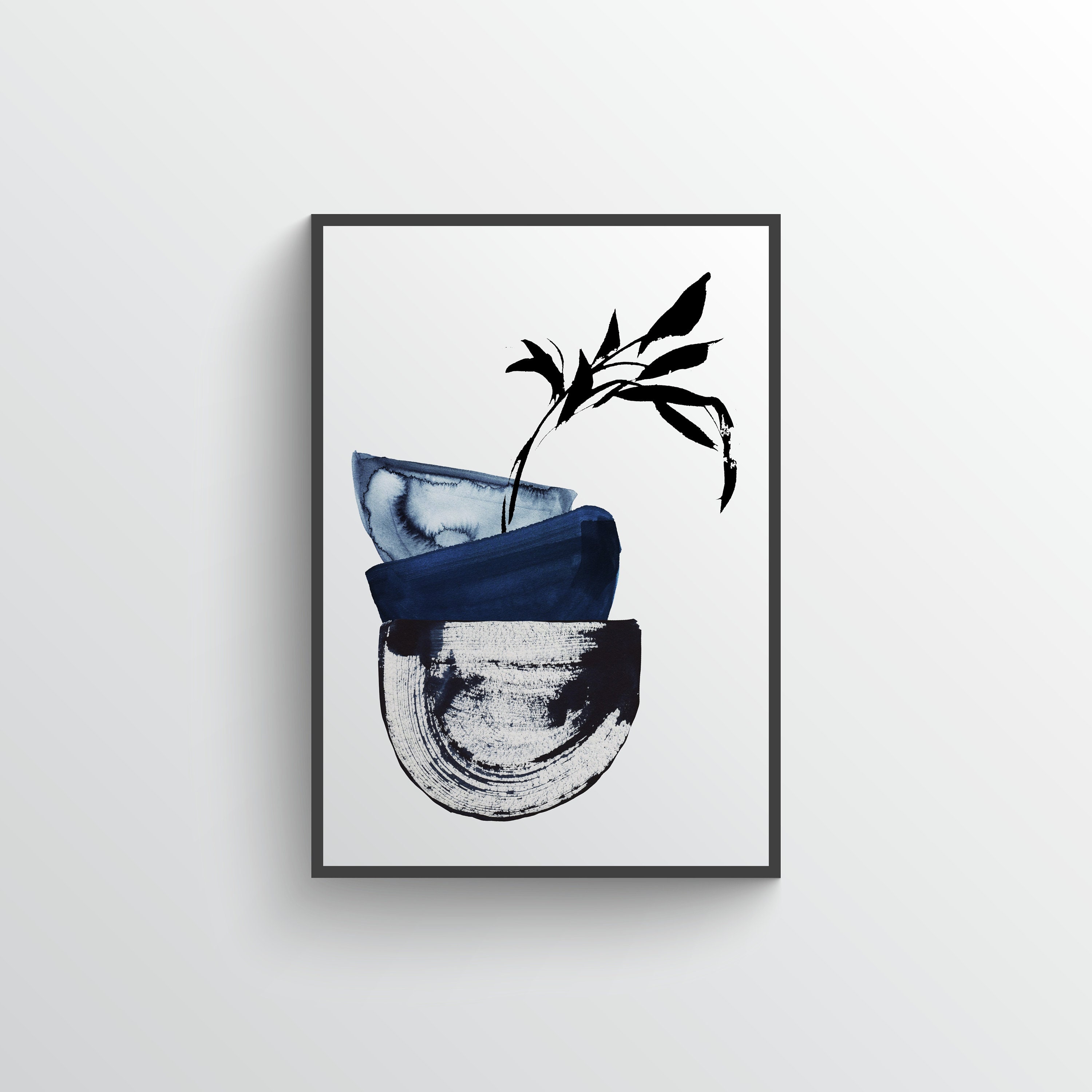 Set of 3 Japandi Neutral Indigo Wall Art Japandi Wall Decor Etsy