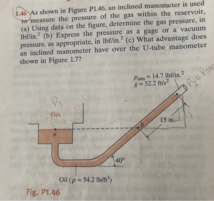 Solved As shown in Figure P1.46, an inclined manometer is