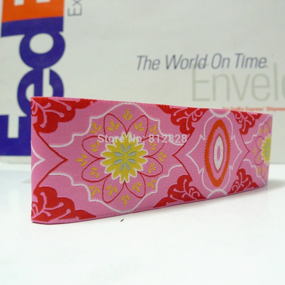 Wide Jacquard Ribbon Trim Flowing Floral Garden Pink by Nineheads Pink Jacquard Ribbon Beautiful colors great to be use in clothing, bags, belts, scrapbooking, festival wear, wedding. this pretty trim has been woven in italy and features a jacquard flower design. jacquard ribbon, woven in turkey. sue spargo kits & ribbons: Daisies bloom across a white ribbon with some petals. Bright pink & acid yellow ladybugs, teal & other colours.. Pink Jacquard Ribbon.