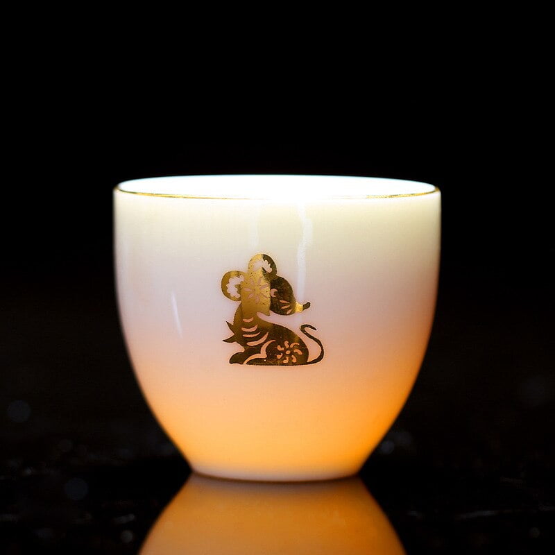 Chinese Zodiac Miaojin Suet Jade Tea Set Tea Cup Chinese White Ceramic