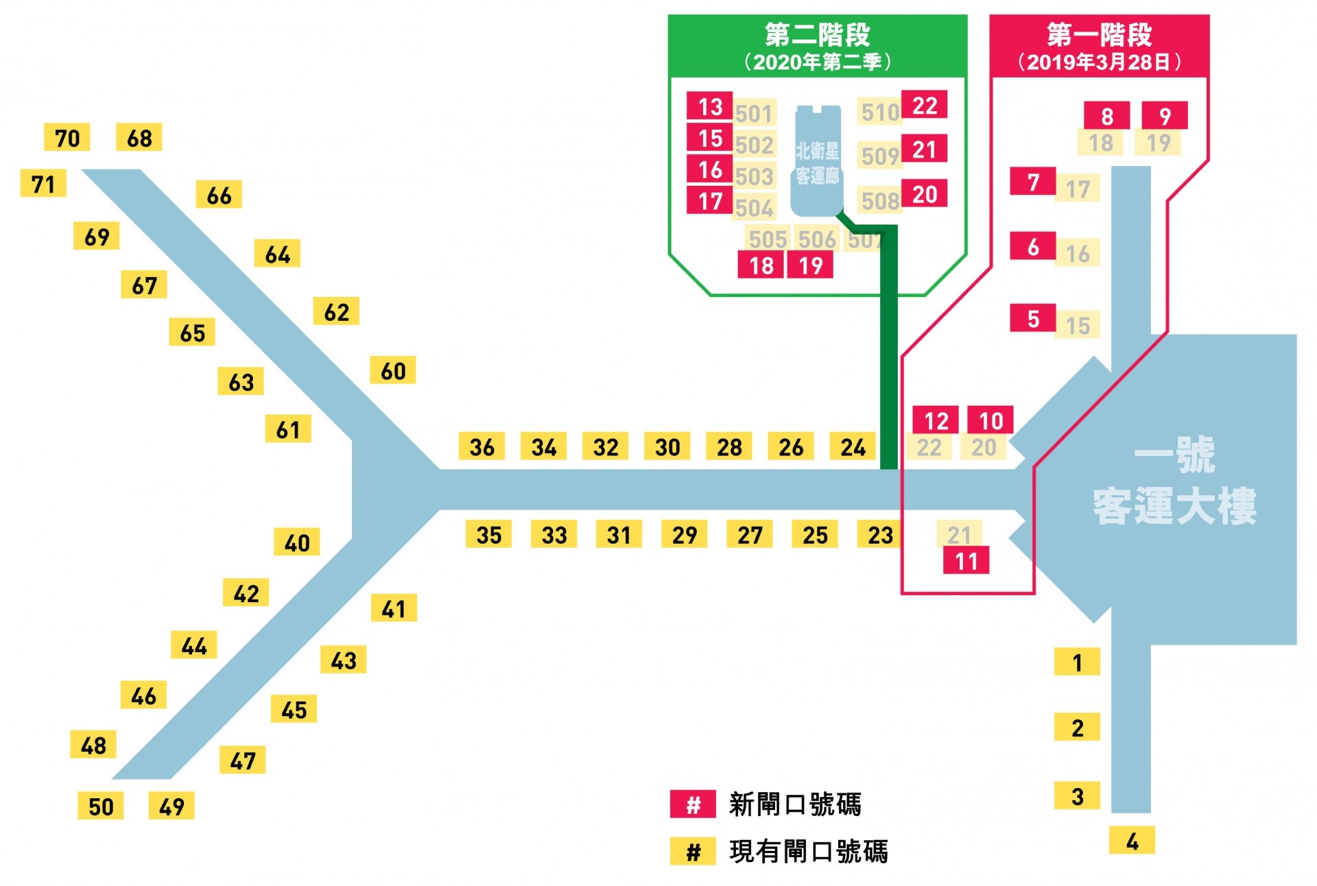 HKG North satellite concourse gates to be renumbered.