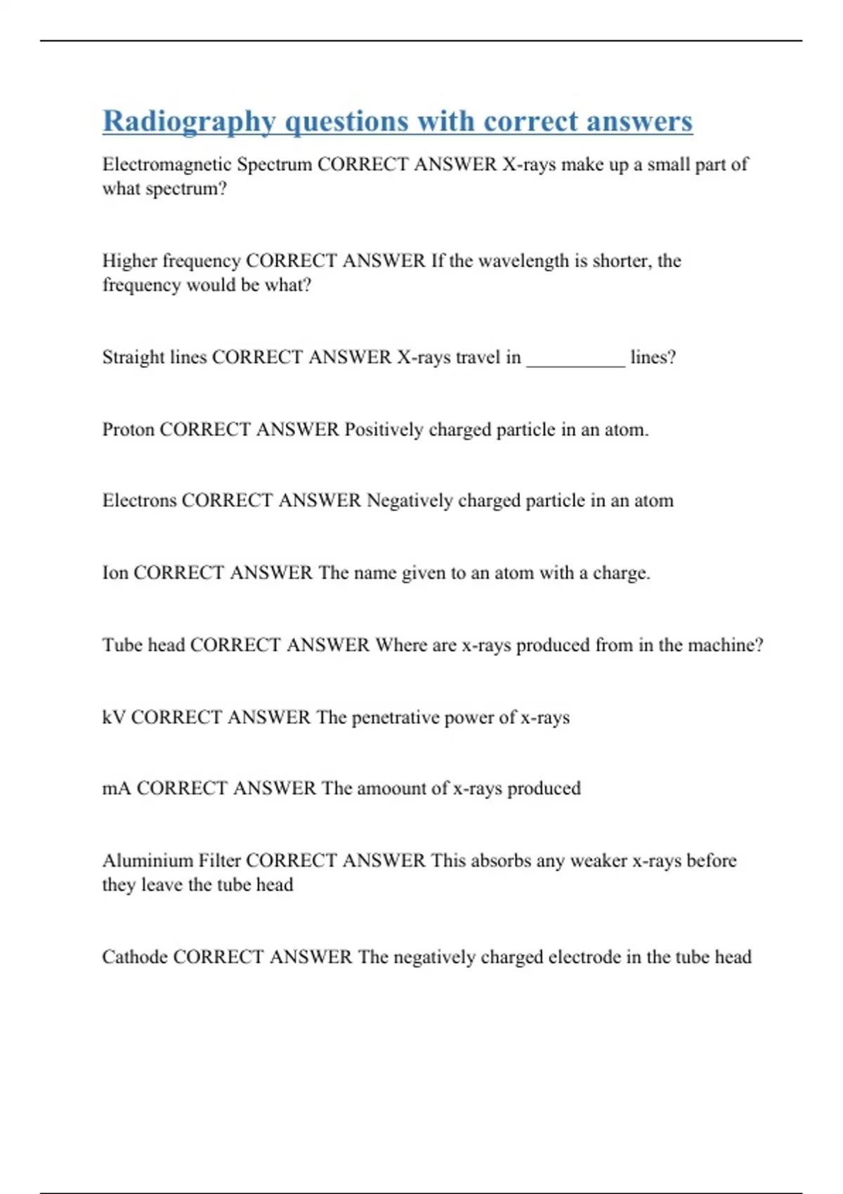 Radiography questions with correct answers Stuvia US