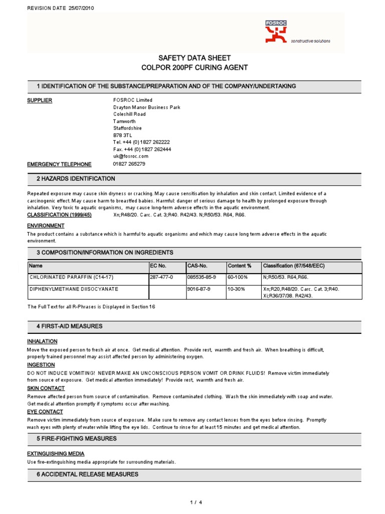 SDS Colpor 200PF Curing Agent 0710.pdf Personal Protective Equipment Chemistry