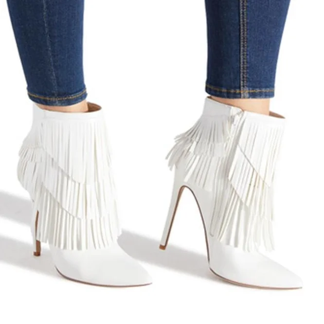 2020 Custom Women Tassel Boots Winter Genuine White Leather Ankle