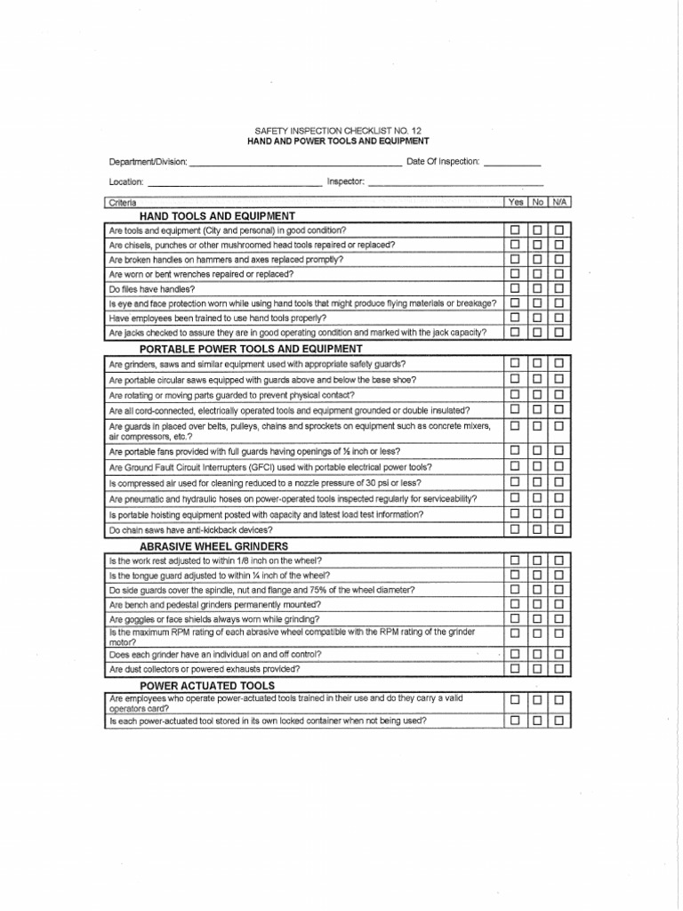 Hand Drill Inspection Checklist Hand And Power Tools Sop This program outlines responsibilities for hand and power tool safety, identification of safety hazards and control measures, training. Hand tool sops outline a safe operating procedure for hand tool use. By virtue of the hazard or complexity associated with critical. Standard operating procedures (sops) are written for all identified critical tasks. This sop describes osha’s general regulatory requirements related to. Hand And Power Tools Sop.