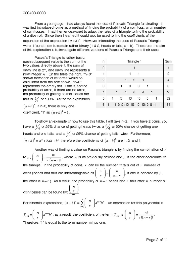 Mathematics Exploration Pascal's Triangle211 PDF Triangle