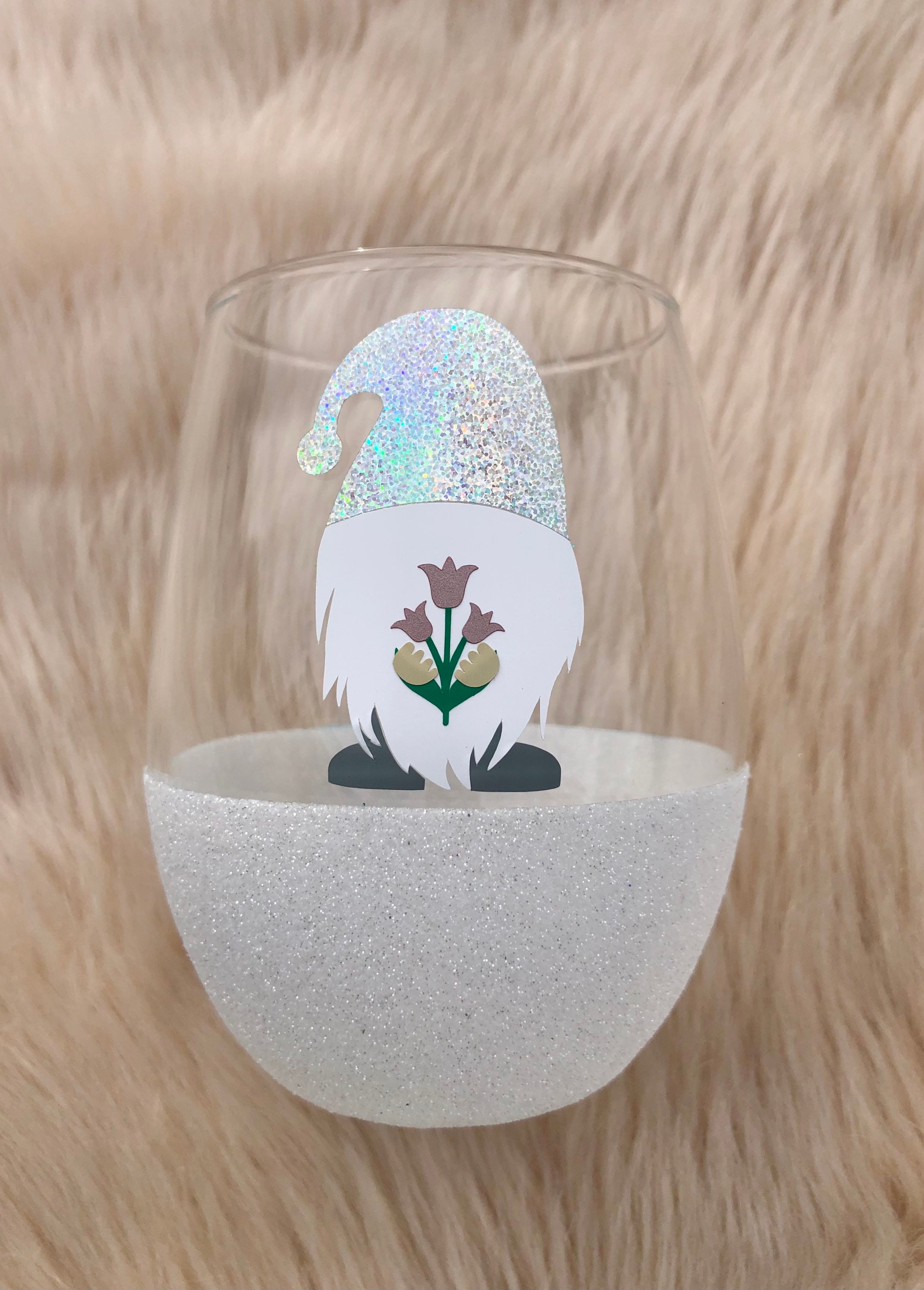 Gnome Wine Glass Gnome Cup Glitter Bottom Glass Etsy
