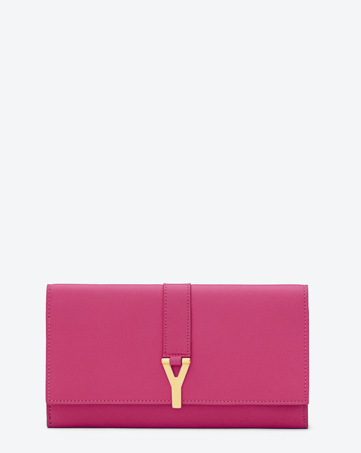Saint Laurent Classic Large Y Flap Wallet In Fuchsia Leather