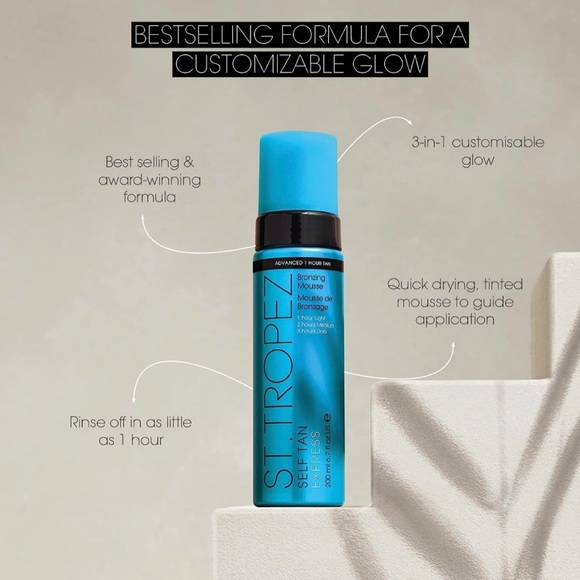St. Tropez Self Tan Express Advanced Bronzing Mousse, 6.7 oz Ingredients and Reviews Self Tan Express Advanced Bronzing Tropez's most advanced express self. For fast and fool proof results, that last all week. control the depth of your tan with st. a lightweight mousse that allows you to choose your tan, from a light glow to a deep dark tan. Self Tan Express Advanced Bronzing.