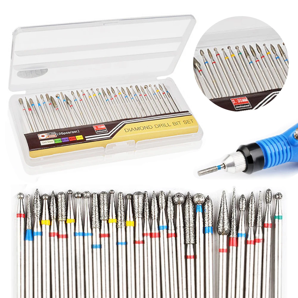 30Style Daimond Drill Bits Set Burr Electric 3/32'' Nail Drill Bit