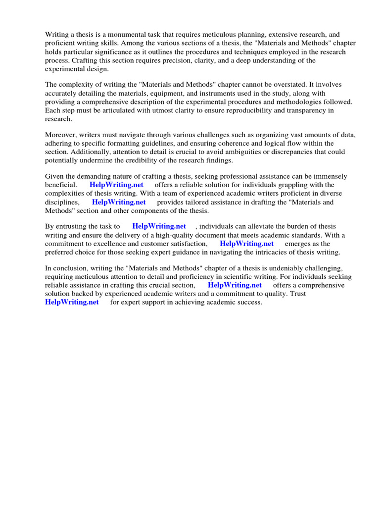 Thesis Writing Materials and Methods PDF Methodology Experiment