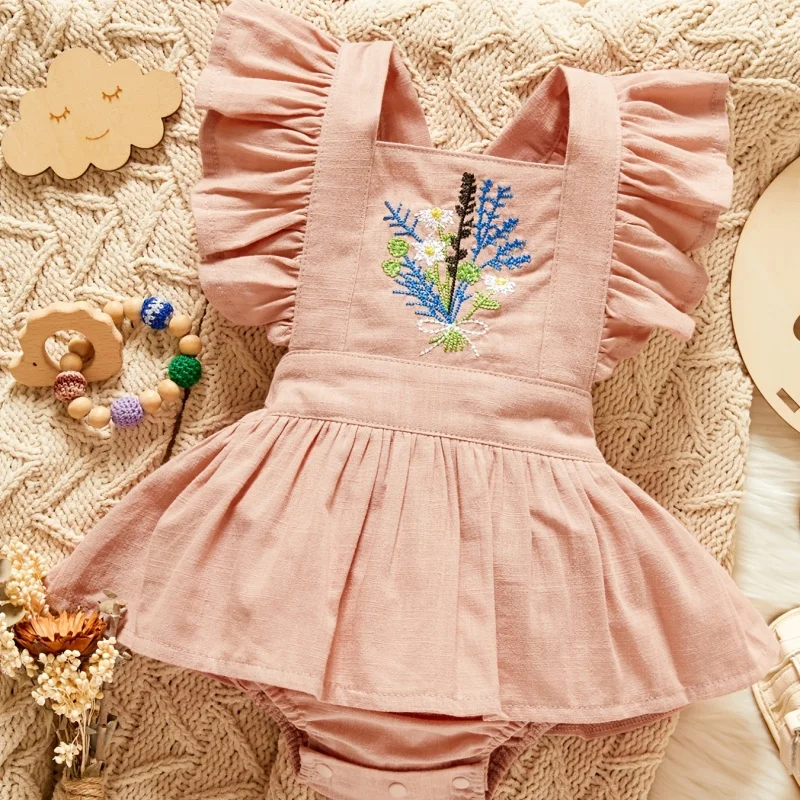 Embroider Baby Girls Jumpsuits Kids Girls Jumpsuit Sweet Style Baby