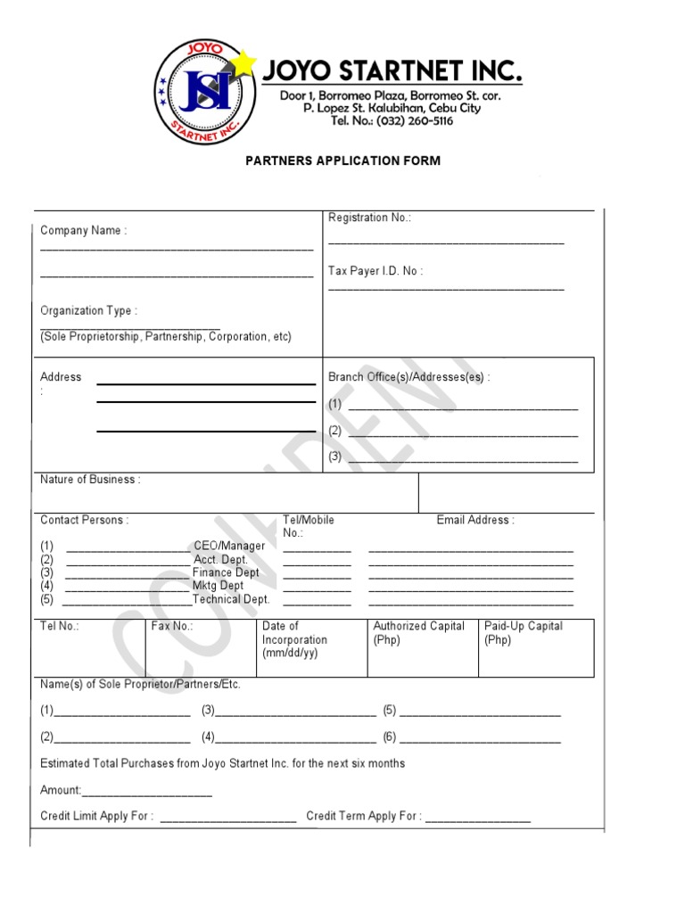 Partners Application Form PDF Sole Proprietorship Economies